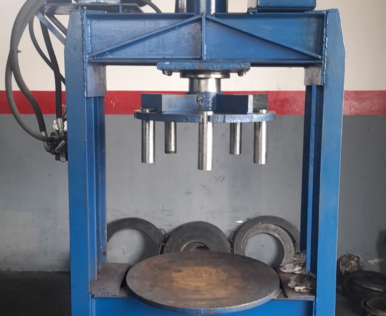 Nossa máquina de prensagem é a solução ideal para a troca de pneus de empilhadeiras. Garantindo agilidade e qualidade no serviço!